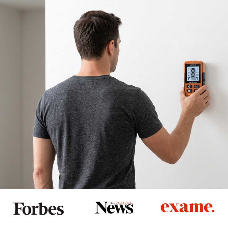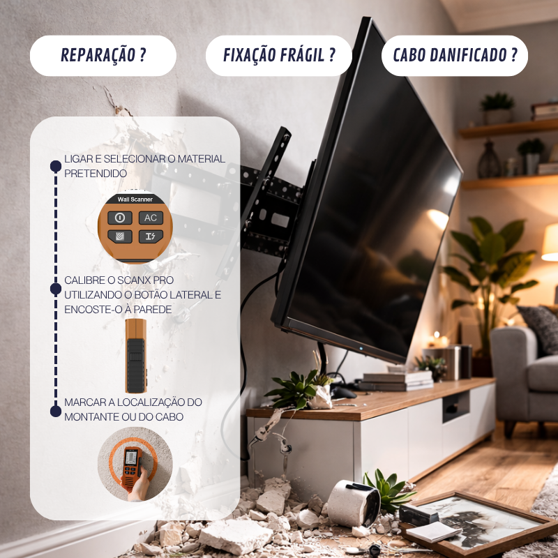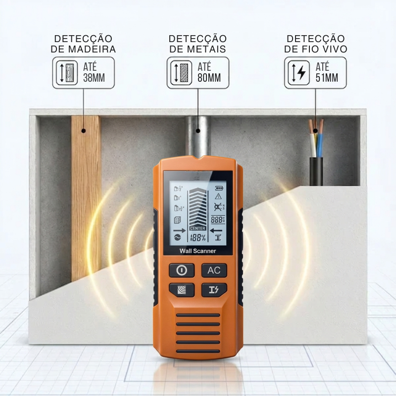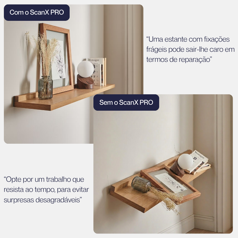 Calibre o ScanX PRO utilizando o botão lateral e encoste-o à parede.